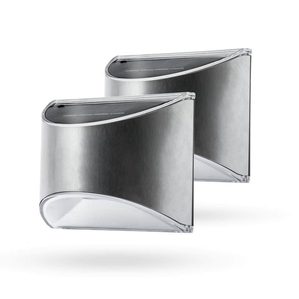 2 stk. Solcelle væglampe LED – Sølv, Flot væg-effekt, udendørs ligger i en prisklasse på omkring pris.