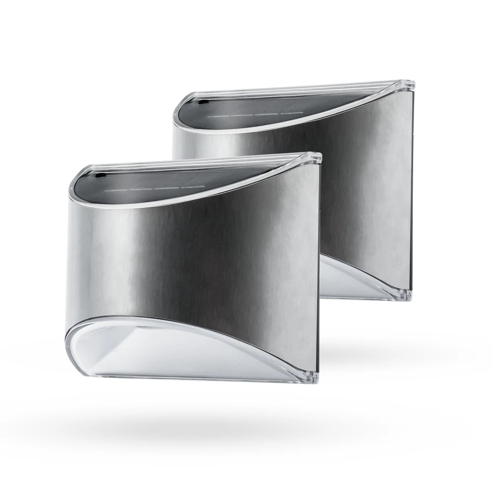 2 stk. Solcelle væglampe LED – Sølv, Flot væg-effekt, udendørs