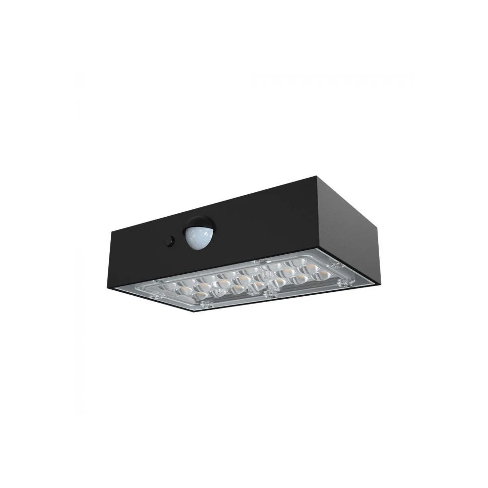 3W Solcelle væglampe LED – IP65, sort, sensor