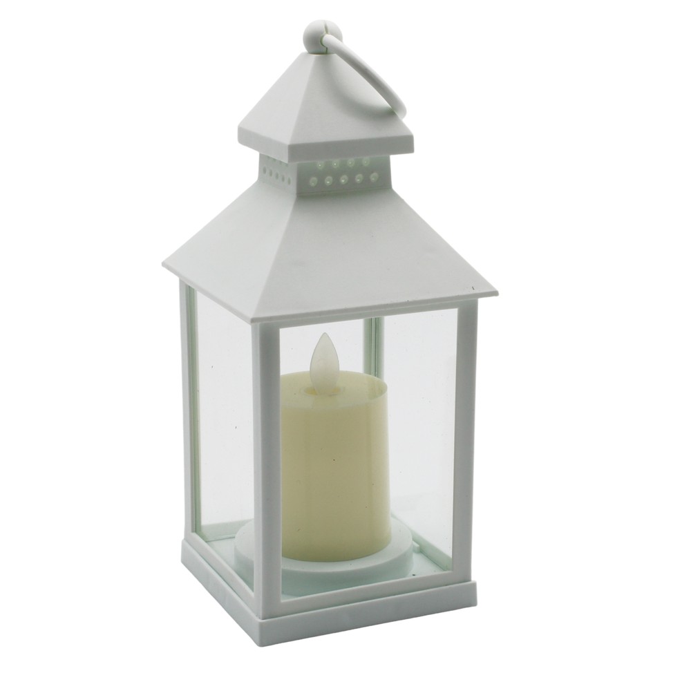 LED lanterne med flammeeffekt – Hvid, firkantet, batteri, IP54 indendørs/udendørs