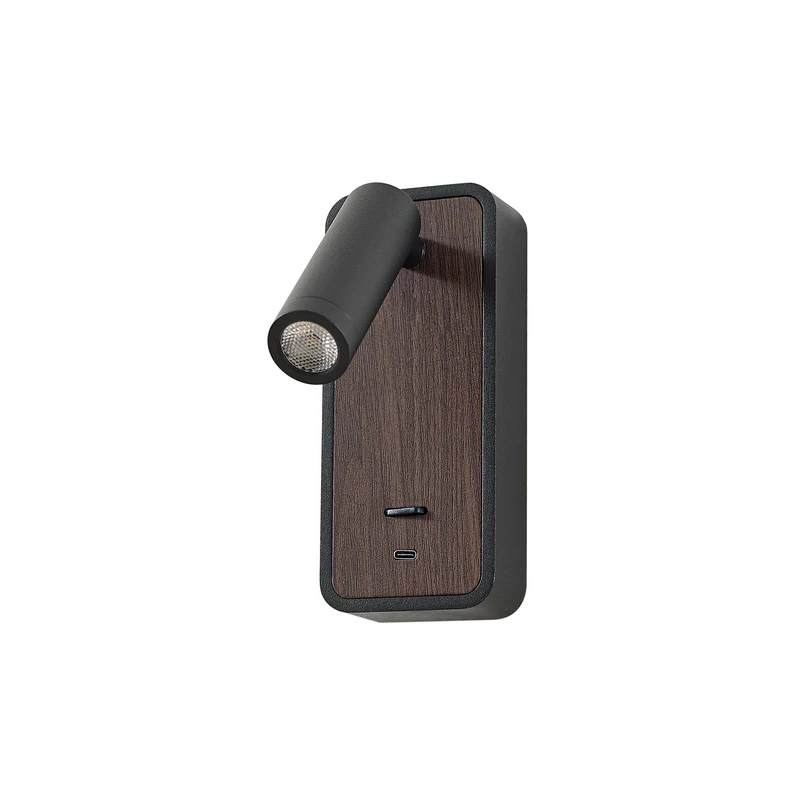 Lindby – Tallis LED-væglampe, sort, USB-C, bevægelig