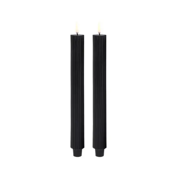 Uyuni Lighting – LED-stearinlys, riflet, 2 stk., 3,2 x 25,5 cm, sort