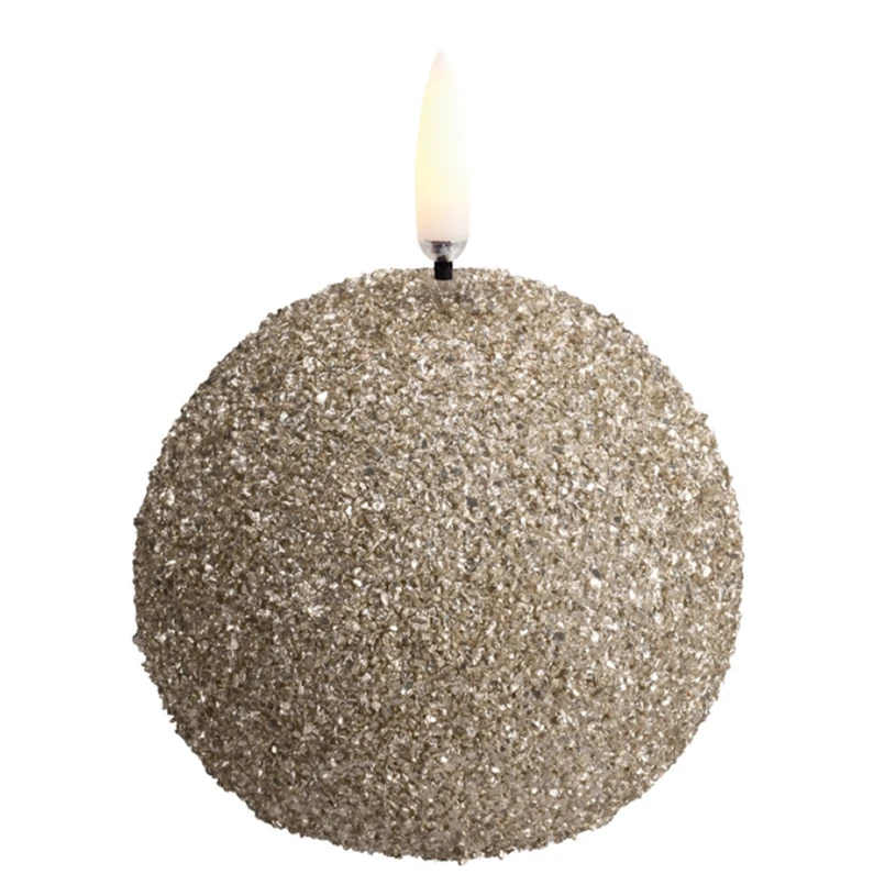 Uyuni Lighting – ROUND LED-stearinlys, creme, Ø 7 cm, glitter